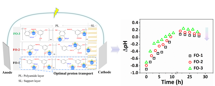 田恩玲副研究員以“Enhancing proton conduction by regulating proton carrier position in polyamide layer of forward osmosis membrane in osmotic microbial fuel cell”為題,在Chemical Engineering Journal上發(fā)表學(xué)術(shù)論文。