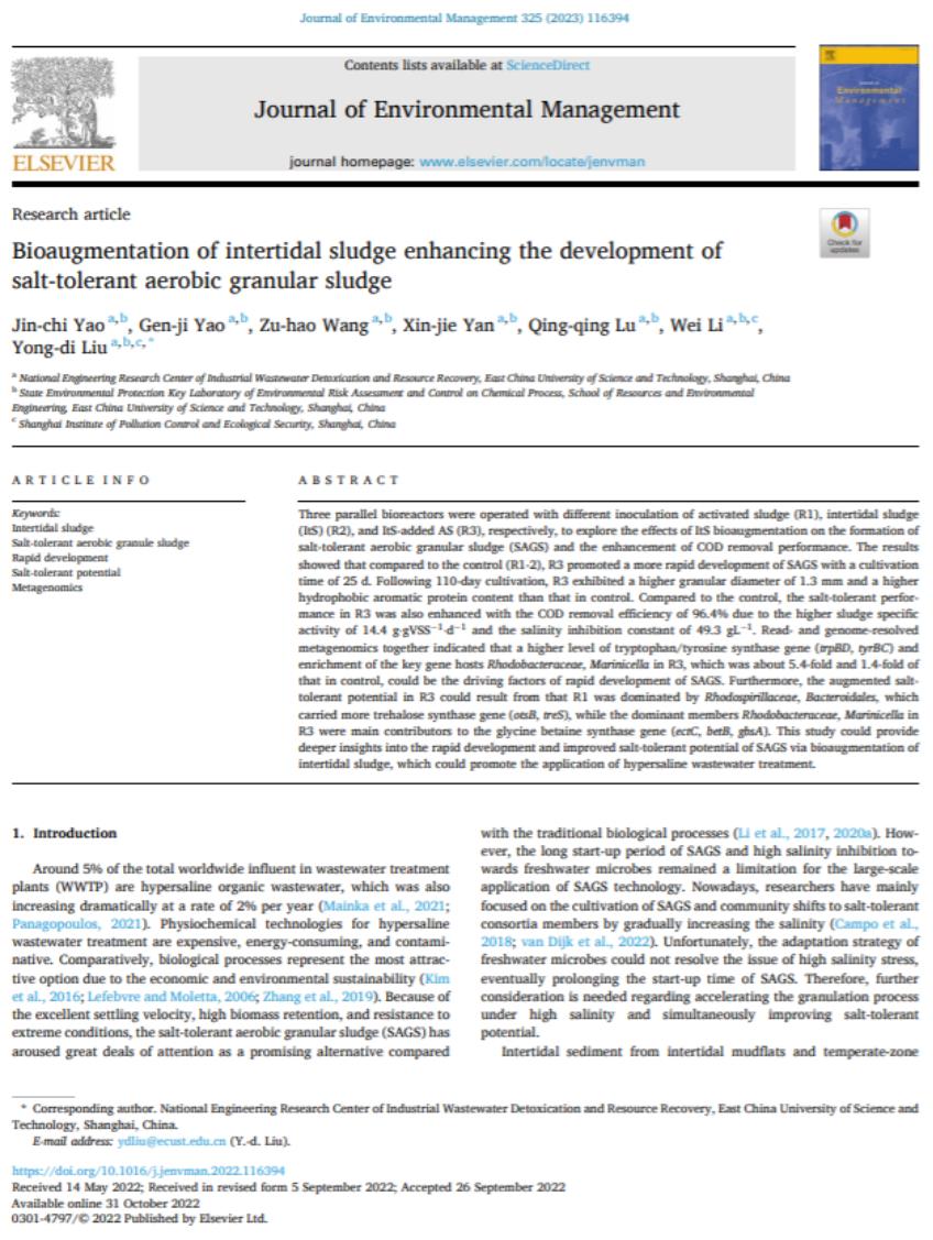 華東理工大學(xué)用我公司生產(chǎn)的BOD-Q水質(zhì)測(cè)定儀采集的BOD數(shù)據(jù)在國(guó)際期刊《Journal of Environmental Management》上發(fā)表題為“Bioaugmentation of intertidal sludge enhancing the development of salt-tolerant aerobic granular sludge”的論文,研究使用我司生產(chǎn)的BOD-Q水質(zhì)測(cè)定儀對(duì)不同污泥生物反應(yīng)器的BOD進(jìn)行測(cè)定,該論文的發(fā)表標(biāo)志著我司儀器的測(cè)定數(shù)據(jù)具有高度的精準(zhǔn)性和可靠性,為今后科研人員了解并使用我司研發(fā)的儀器提供有益的參考。